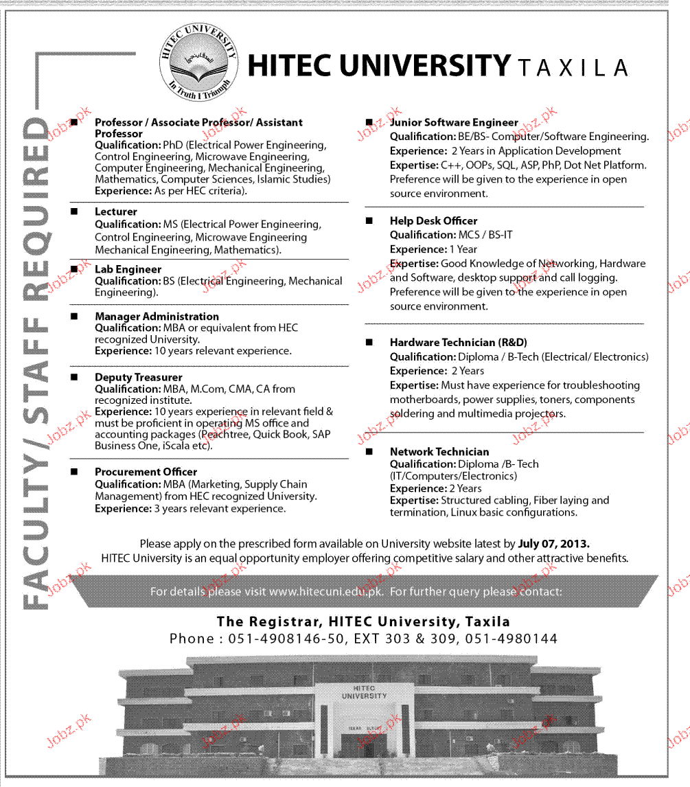 Apply as per details in job advertisement. Login to view further details of how to apply via https://www.jobz.pk online.