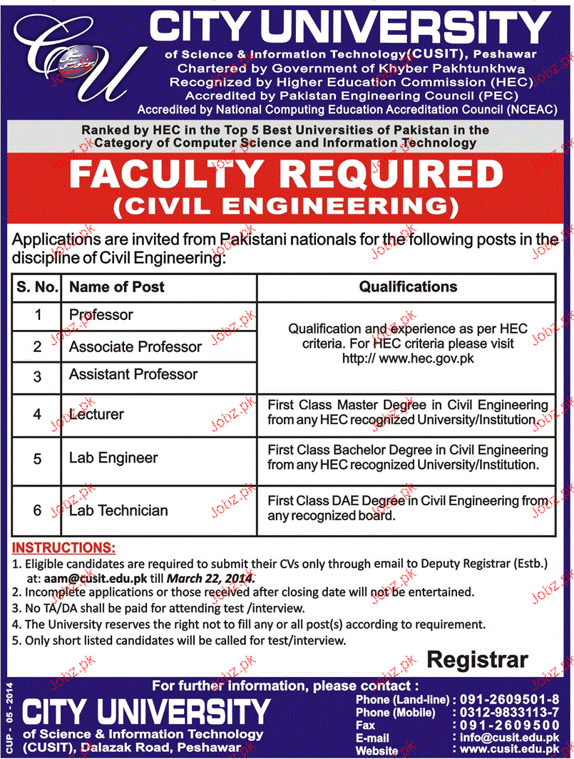 Apply as per details in job advertisement. Login to view further details of how to apply via https://www.jobz.pk online.