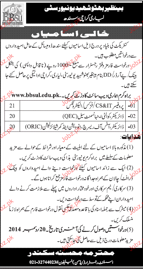 Apply as per details in job advertisement. Login to view further details of how to apply via https://www.jobz.pk online.