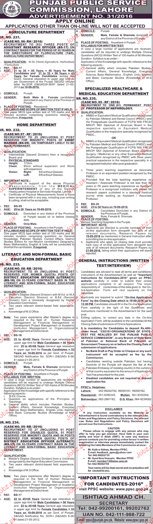 Latest Punjab Public Service Commission PPSC Teaching Posts Lahore 2025