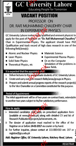 Apply as per details in job advertisement. Login to view further details of how to apply via https://www.jobz.pk online.