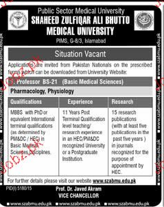 Professors Job In Shaheed Zulifqar Ali Bhutto Medical Univ