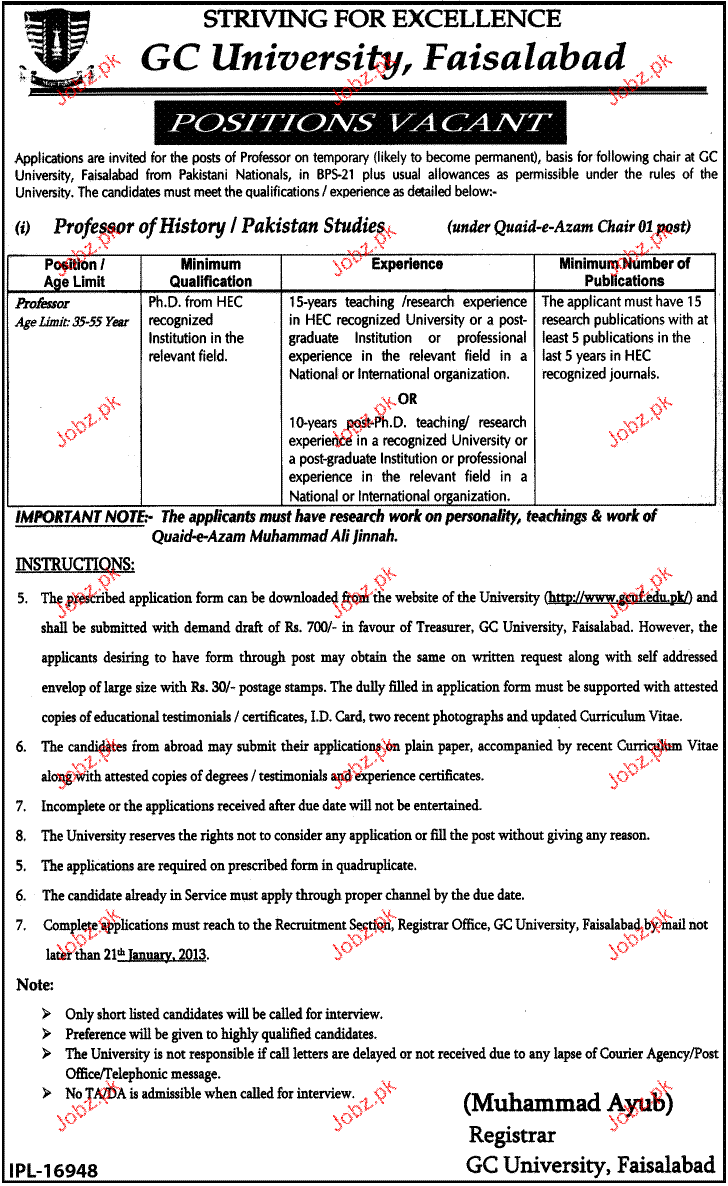 Apply as per details in job advertisement. Login to view further details of how to apply via https://www.jobz.pk online.