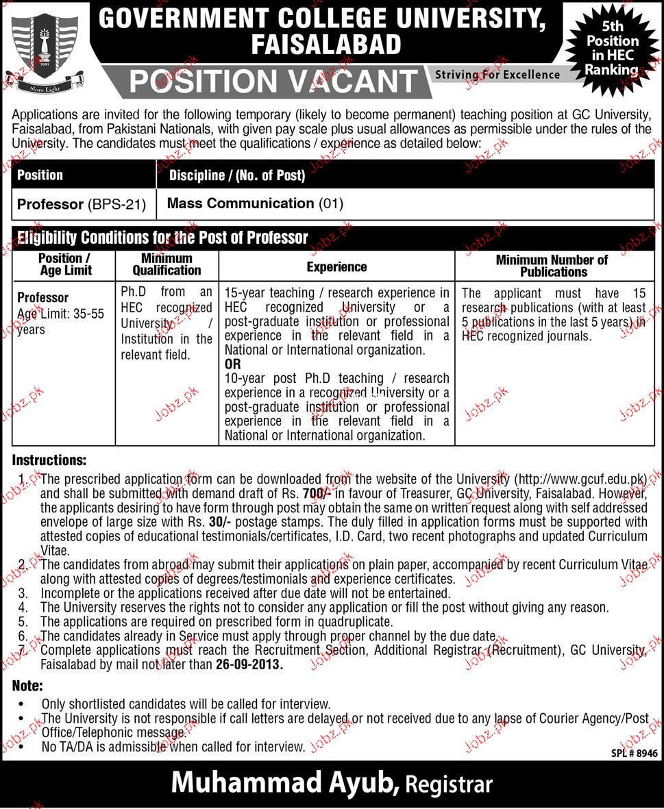 Professors Job Opportunity