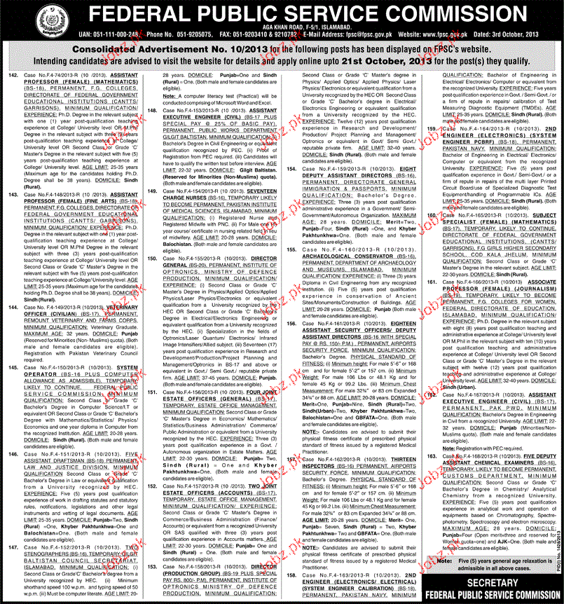 Latest Federal Public Service Commission FPSC Teaching Posts Islamabad 2025