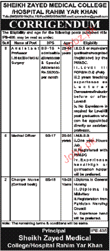 Latest Sheikh Zayed Medical College Medical Posts Rahim Yar Khan 2025
