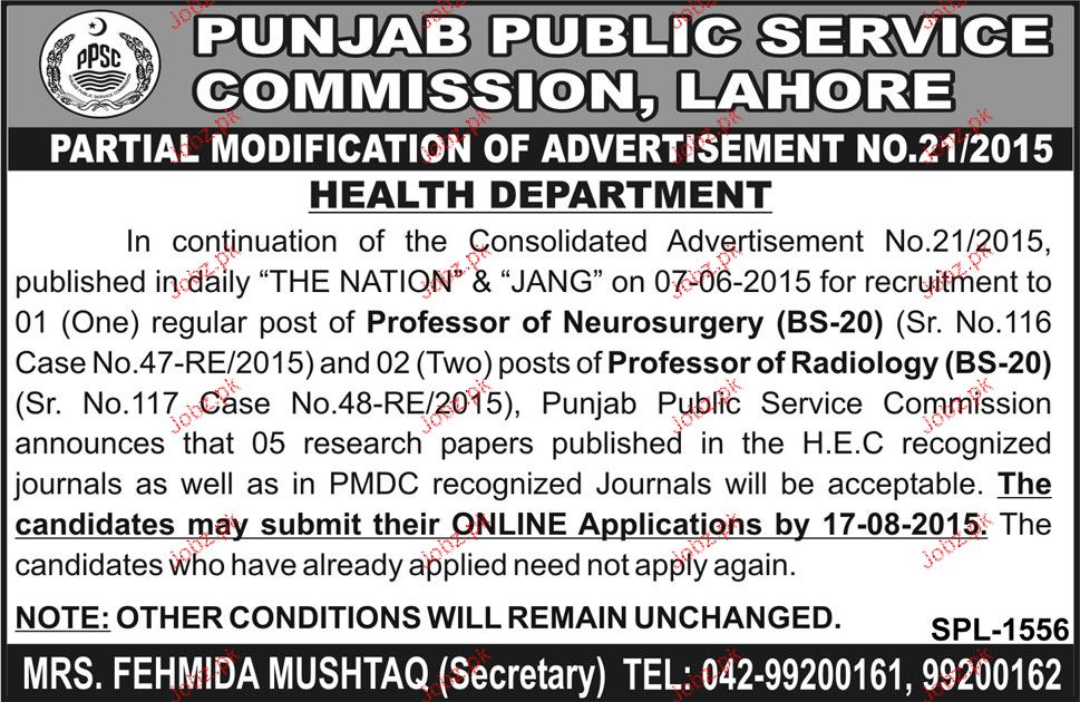 Professors Of Neurosurgery Job In Public Service Commission