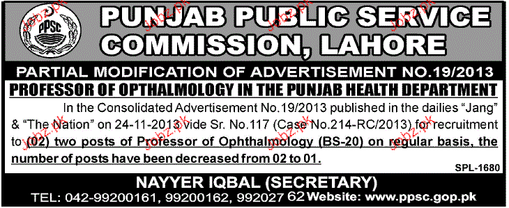 Professors Of Opthalmology Job In Punjab Public Service Comm