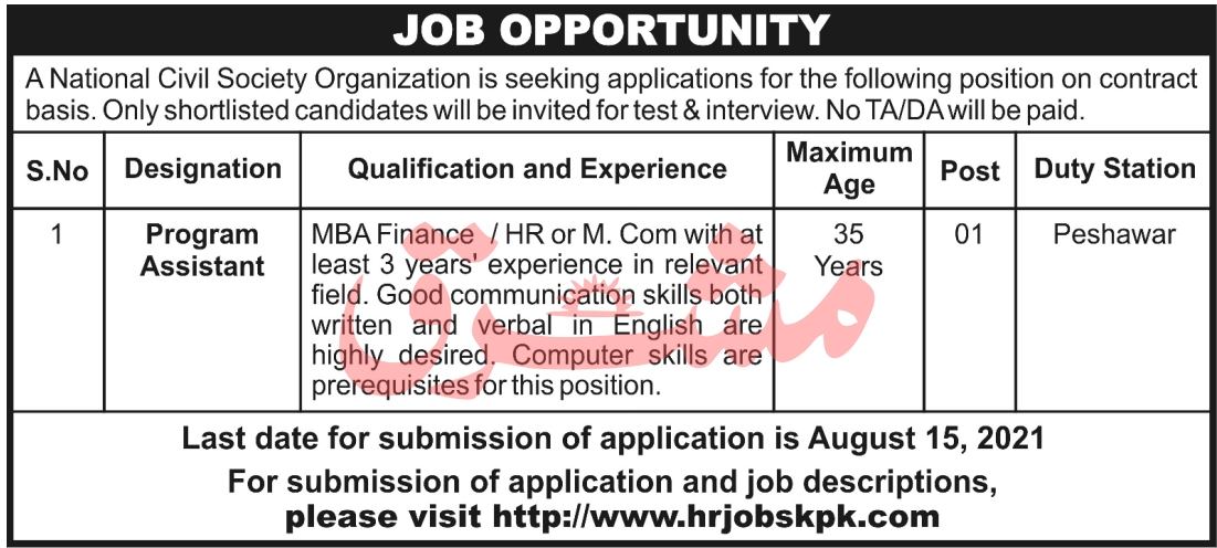Latest National Civil Society Organization Management Posts Peshawar 2025