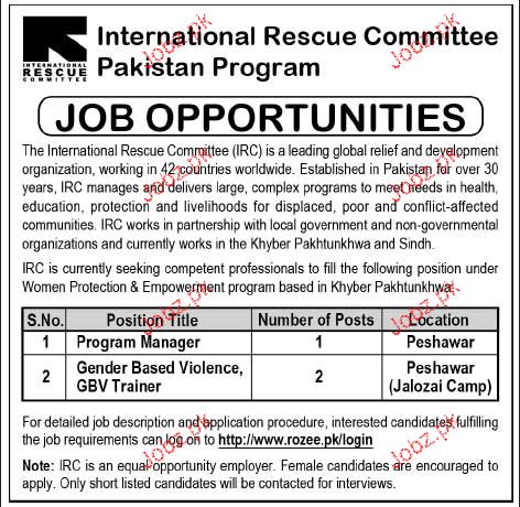 Program Manager And Gender Based Trainers Job Opportunity