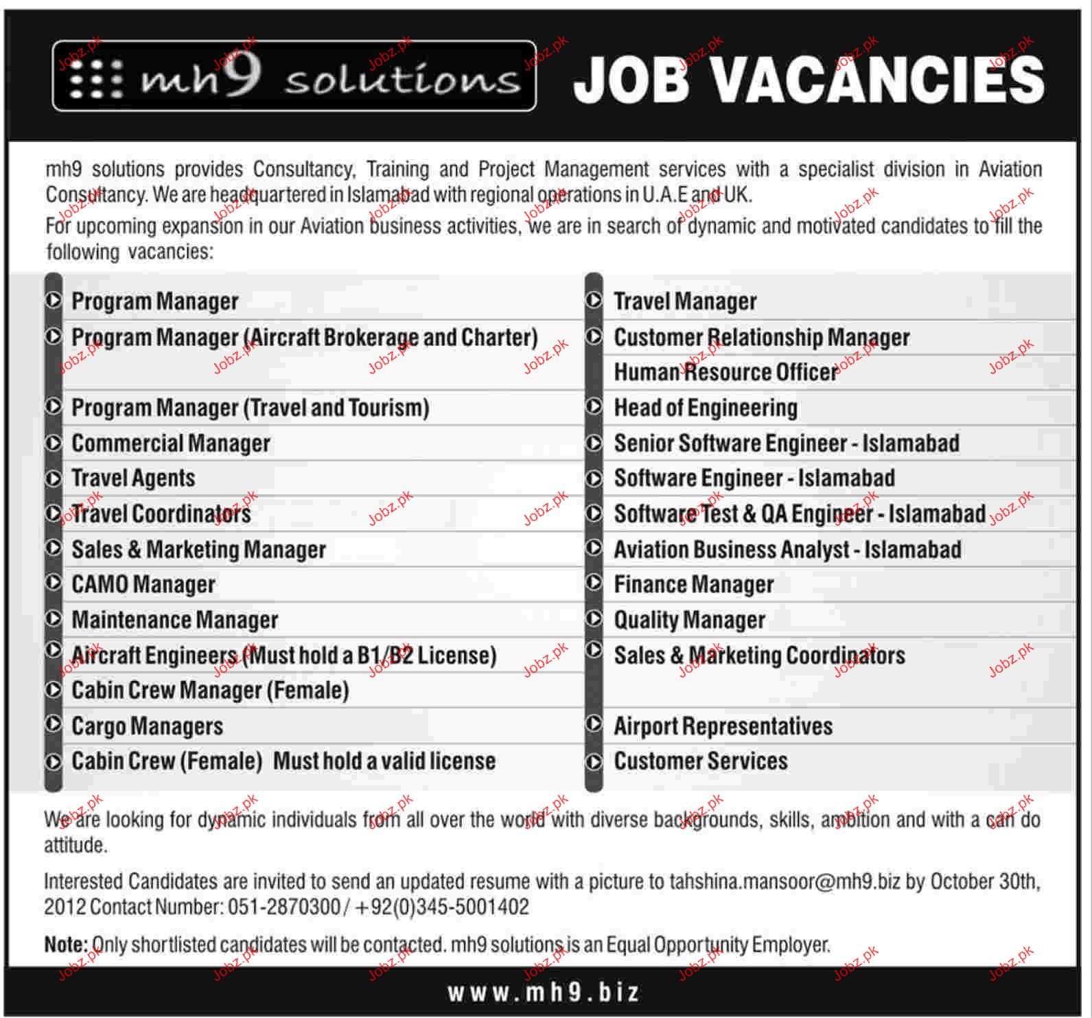 Apply as per details in job advertisement. Login to view further details of how to apply via https://www.jobz.pk online.