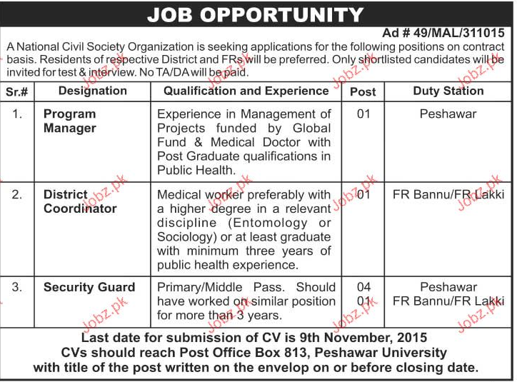 Apply as per details in job advertisement. Login to view further details of how to apply via https://www.jobz.pk online.