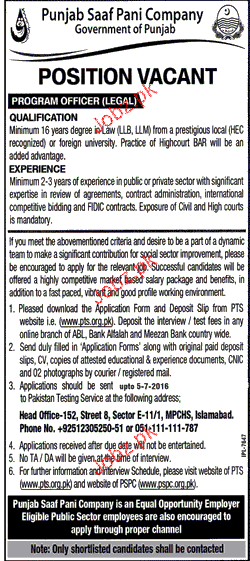 Program Officers Job in Punjab Saaf Pani Company