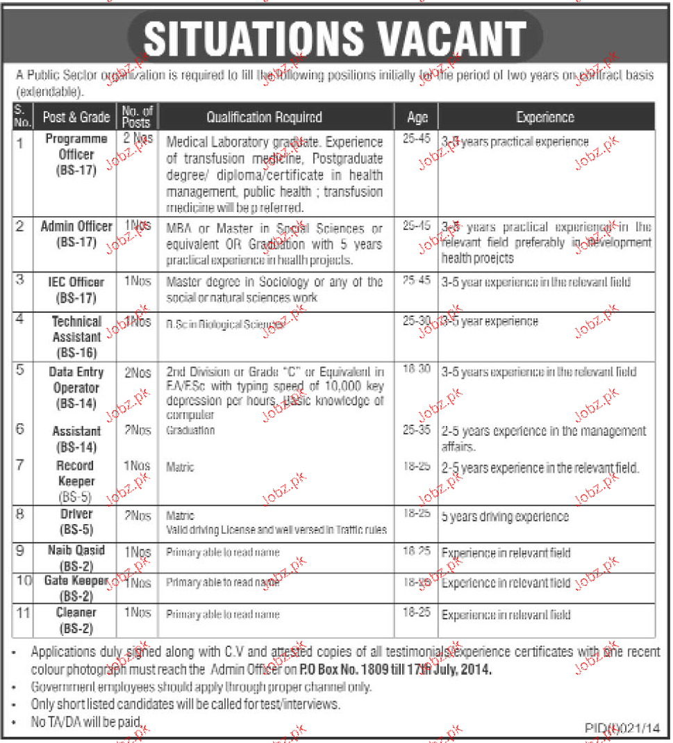 Apply as per details in job advertisement. Login to view further details of how to apply via https://www.jobz.pk online.