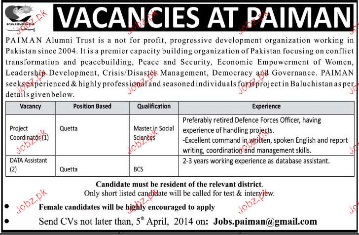 Apply as per details in job advertisement. Login to view further details of how to apply via https://www.jobz.pk online.