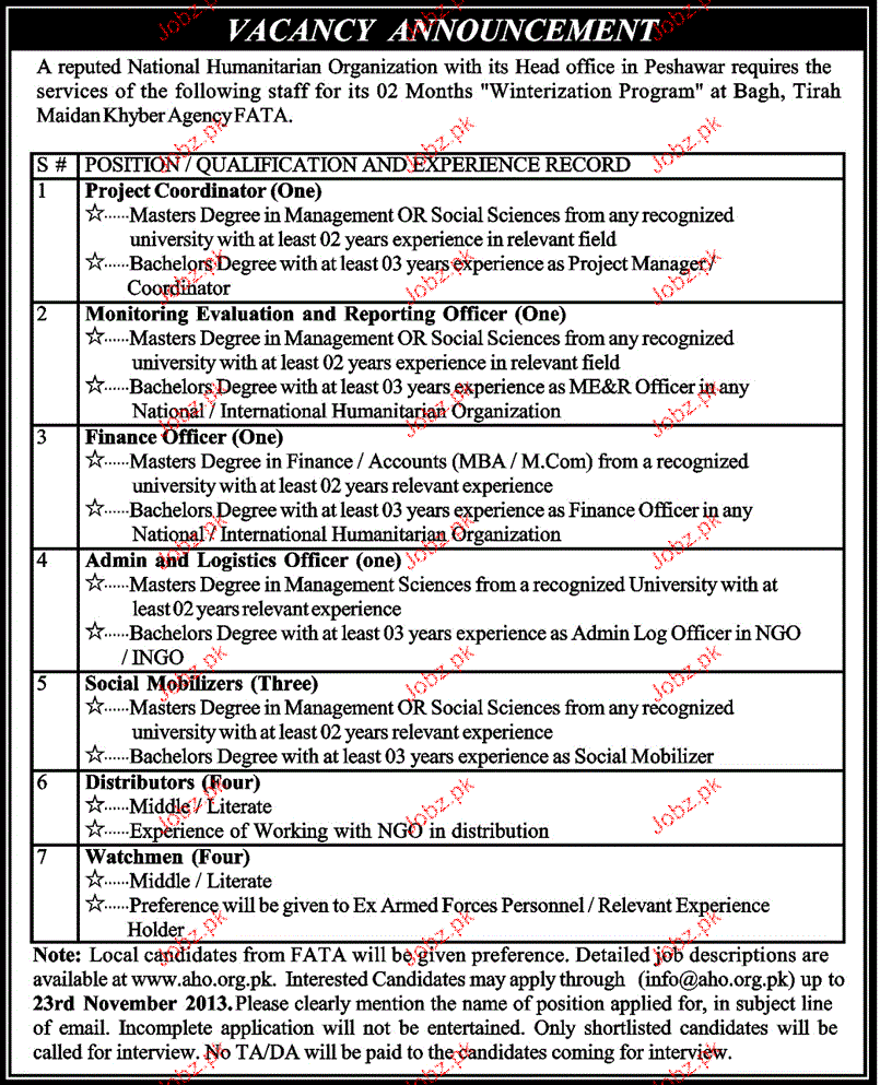 Apply as per details in job advertisement. Login to view further details of how to apply via https://www.jobz.pk online.