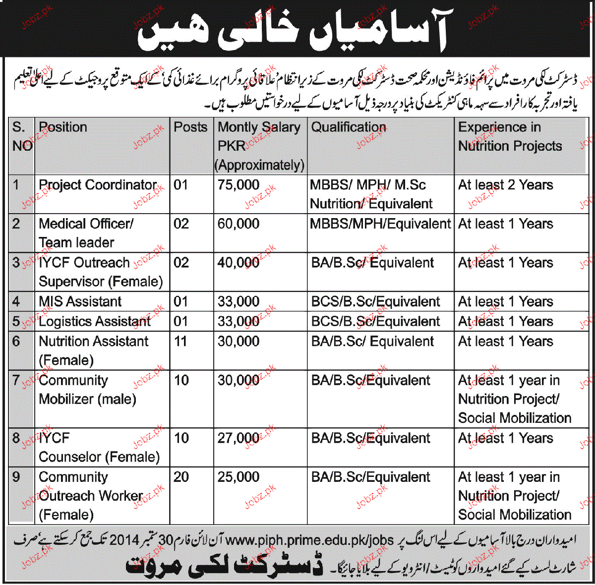 Apply as per details in job advertisement. Login to view further details of how to apply via https://www.jobz.pk online.
