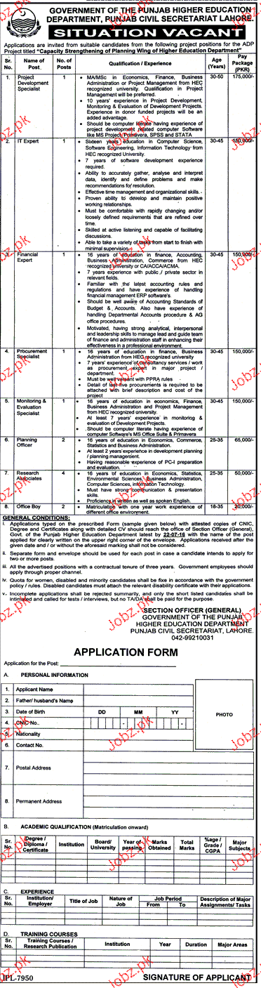 Apply as per details in job advertisement. Login to view further details of how to apply via https://www.jobz.pk online.