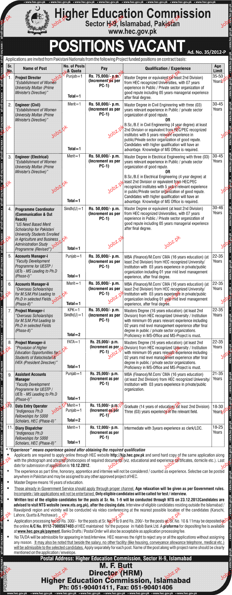 Latest Higher Education Commission HEC Management Posts Islamabad 2025