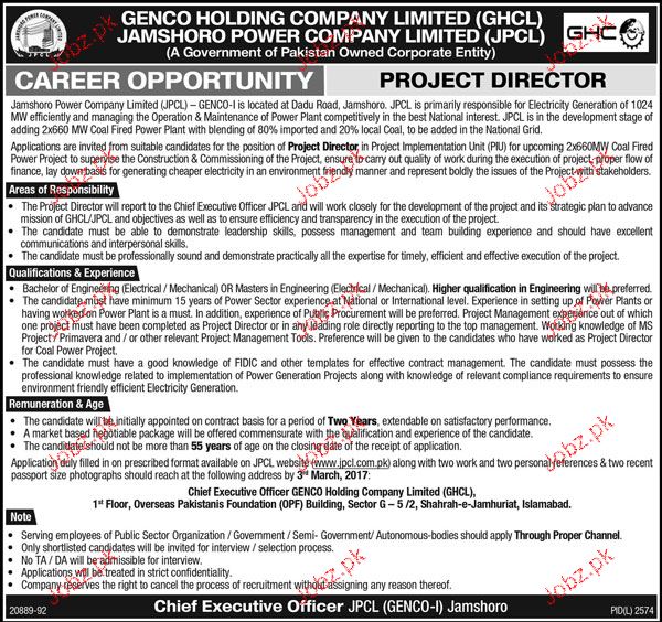 Apply as per details in job advertisement. Login to view further details of how to apply via https://www.jobz.pk online.