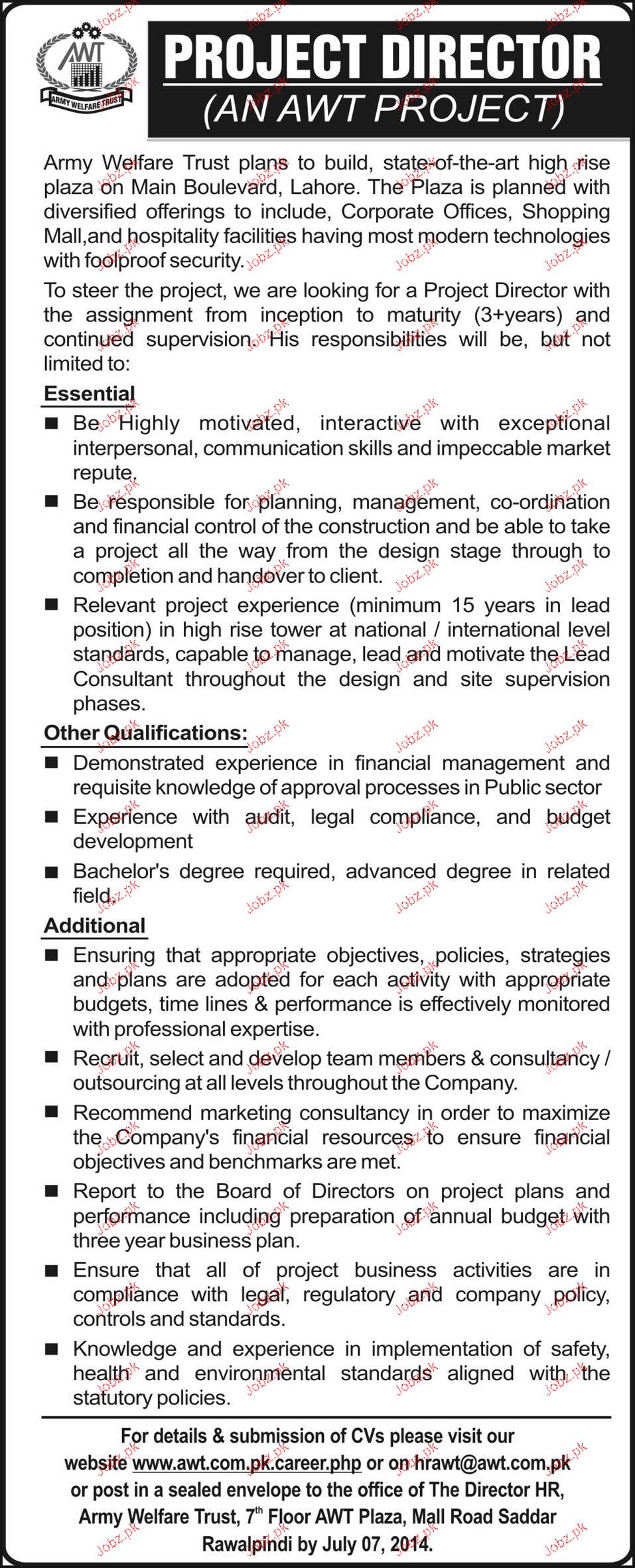 Apply as per details in job advertisement. Login to view further details of how to apply via https://www.jobz.pk online.