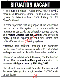 Apply as per details in job advertisement. Login to view further details of how to apply via https://www.jobz.pk online.