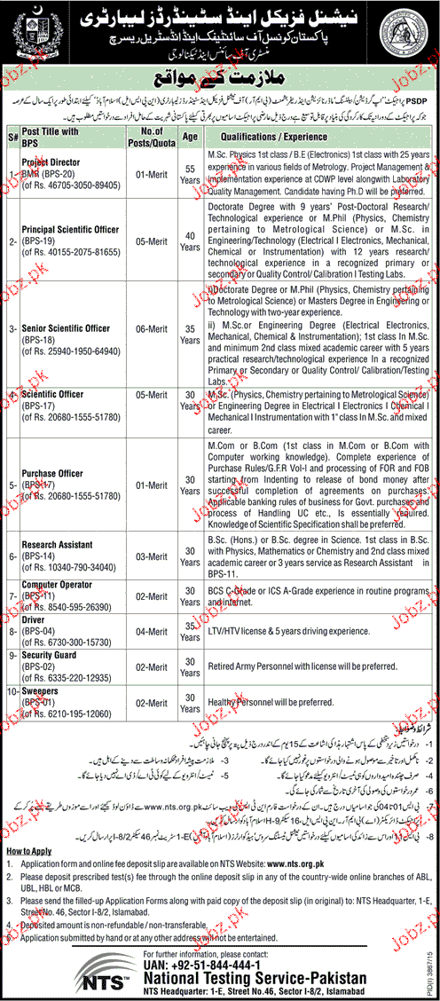 Apply as per details in job advertisement. Login to view further details of how to apply via https://www.jobz.pk online.