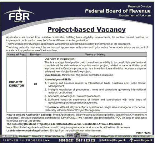 Apply as per details in job advertisement. Login to view further details of how to apply via https://www.jobz.pk online.