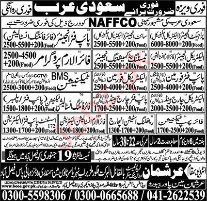 Arshman Manpower Bureau jobs advertisement dated about 14 January 2024 in daily Express Newspaper invites application for the vacant post of fire alarm programmer, electrical engineer, pipe fitter foreman, plumber, pipe fitter engineer, electrician, refilling station incharge, fire alarm installation electrician, pipe fitter charge hand, testing commissioning engineer, pipe fitter, electrical foreman, electrical charge hand, fire fighting installation technician, bms technician, assistant pipe fitter, fire pump technician, site engineer and project engineer in Riyadh, riyadh Saudi Arabia. Persons with Bachelor, Intermediate, Middle and Matric etc. education can apply.