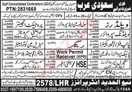 Vacant posts including piping supervisor foreman, rigger, sand blaster, pipe fabricator, welding supervisor, painter, construction worker, quantity surveyor, structural supervisor foreman, hse officer, electrical instrument supervisor foreman, pipe fitter, safety officer, material man coordinator, welder helper, work permit receiver, civil foreman supervisor, project engineer and welder are announced in New Al Hadeed Enterprise Riyadh, riyadh Saudi Arabia as per 26 August 2024 advertisement in daily Express Newspaper. Preferred Education is Intermediate, Bachelor, Middle and Matric etc.