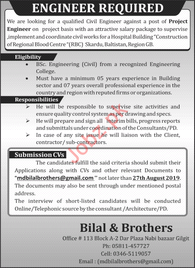 Project Engineer Job 2019 in Skardu Gilgit Baltistan