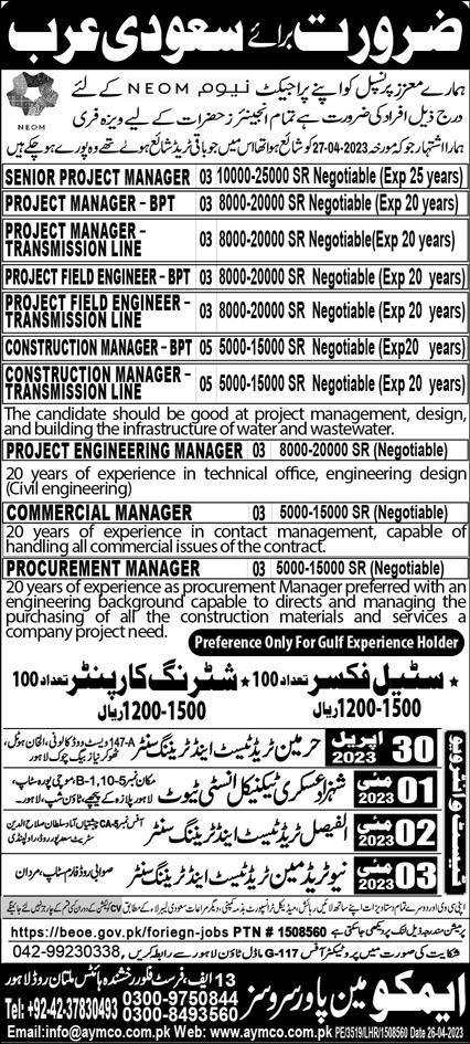Latest Overseas jobs in New Trade Man Trade Test & Training Center in Management and others can be applied till 3 May 2023 or as per closing date in newspaper ad. Read complete ad online to know how to apply on latest New Trade Man Trade Test & Training Center job opportunities. Learn today skills like Commercials, Engineering, Project Planning, Management, Project Management, Procurement, Civil Engineering, Construction Management and Construction to apply confidently on these New Trade Man Trade Test & Training Center jobs. Salary varies from 1800000. Earn extra money with overtime. On job transport, accommodation and medical facility is provided.