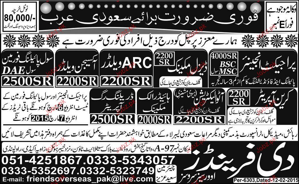 Project Engineers, Arc Welders, Crane Operators Wanted