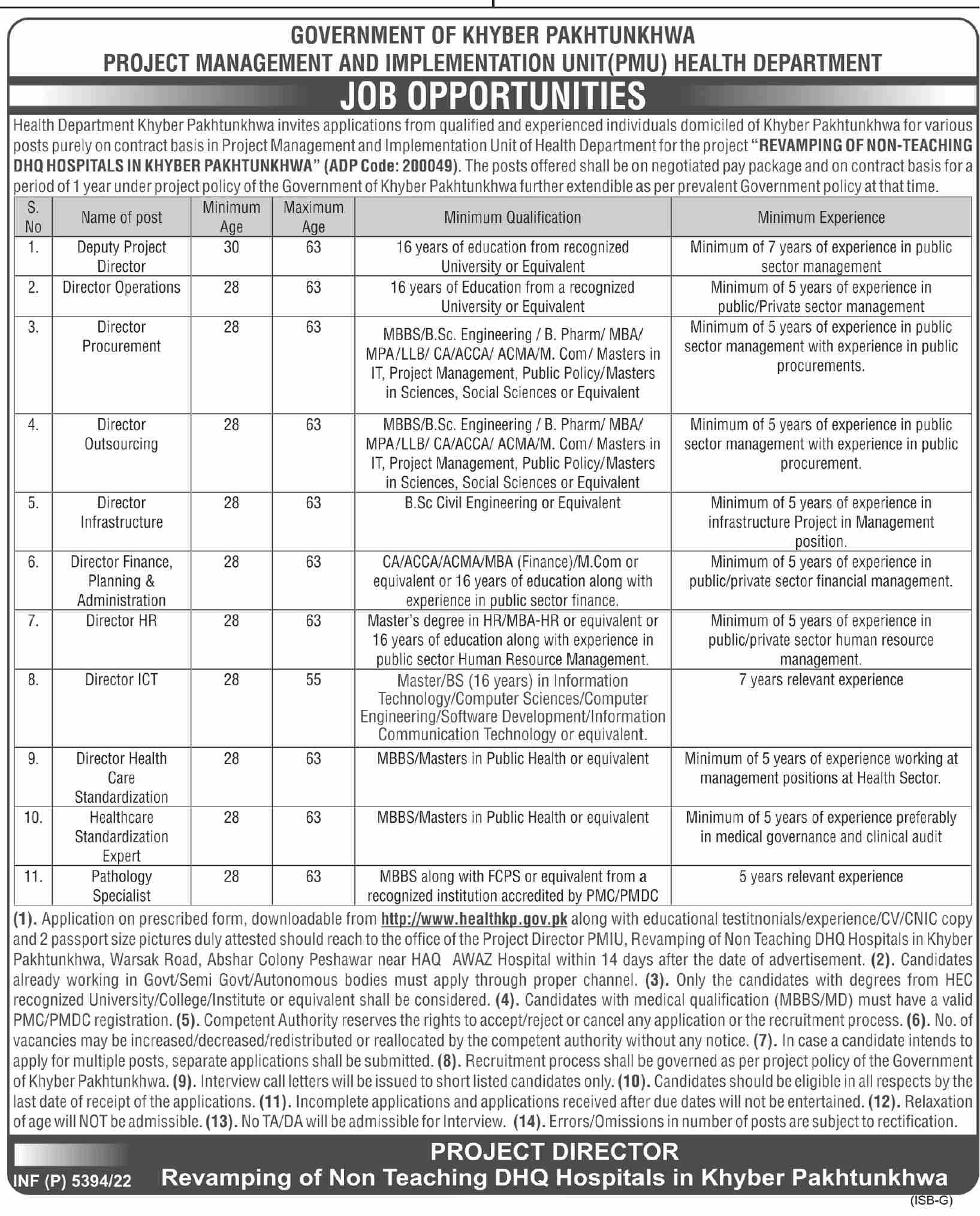 Health Department is looking for candidates for following posts as per job advertisement published in daily Dawn Newspaper of September 15, 2022 for location Peshawar, peshawar Khyber Pakhtunkhwa KPK Pakistan: