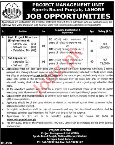 Vacancies in Sports Board Punjab Advertisement March 2019