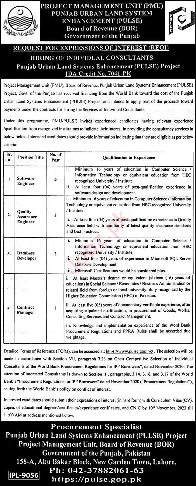 Project Management Unit PMU is looking for candidates for following posts as per job advertisement published in daily Express Newspaper of October 29, 2023 for location Lahore, lahore Punjab Pakistan: