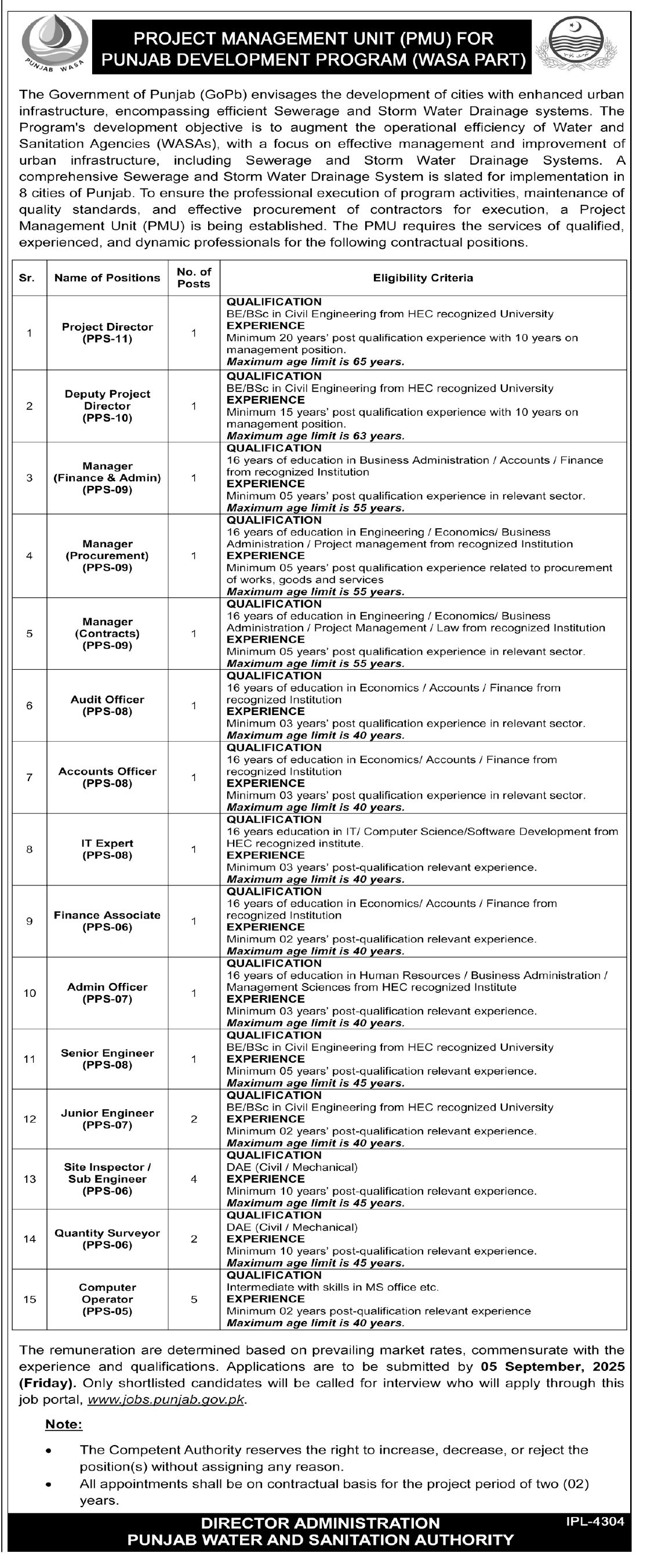Vacancies in Project Management Unit PMU Advertisement August 2025