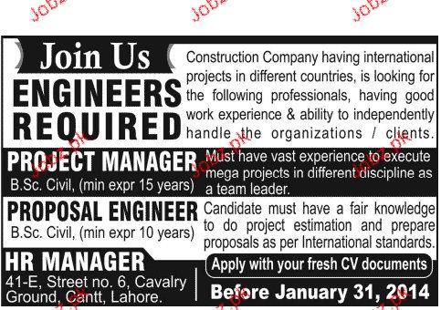 Latest Private Company Engineering Posts Lahore 2025