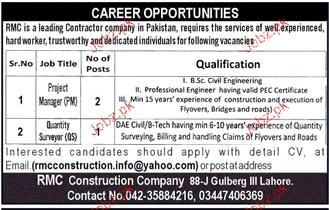 Project Manager and Quantity Surveyors Job opportunity