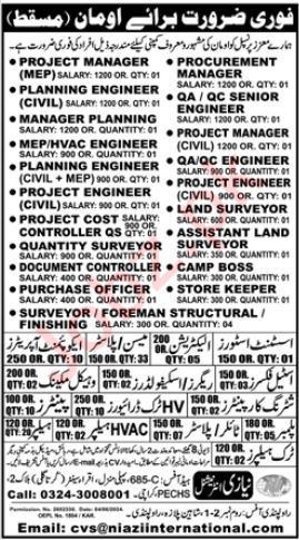 Niazi International Company is looking for candidates for following posts as per job advertisement published in daily Jang Newspaper of June 10, 2024 for location Muscat, muscat Oman: