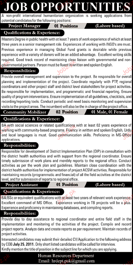 Apply as per details in job advertisement. Login to view further details of how to apply via https://www.jobz.pk online.