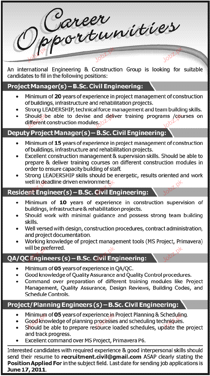 Apply as per details in job advertisement. Login to view further details of how to apply via https://www.jobz.pk online.
