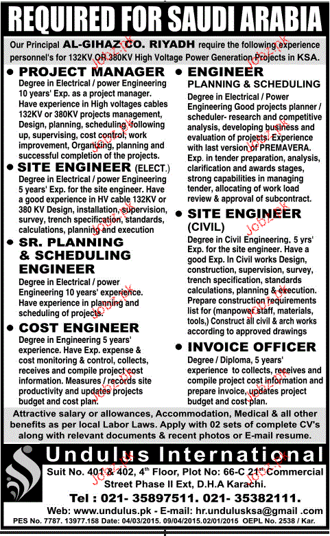 Project Manager, Engineers, Site Engineers Job Opportunity