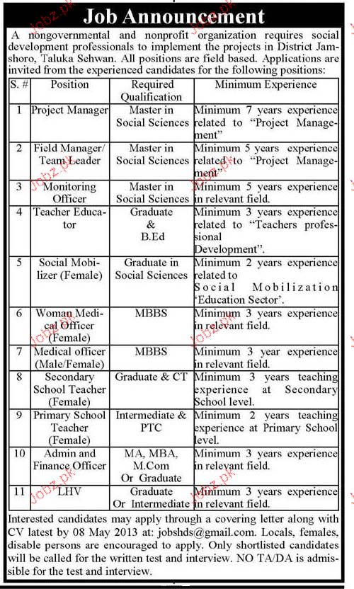 Apply as per details in job advertisement. Login to view further details of how to apply via https://www.jobz.pk online.
