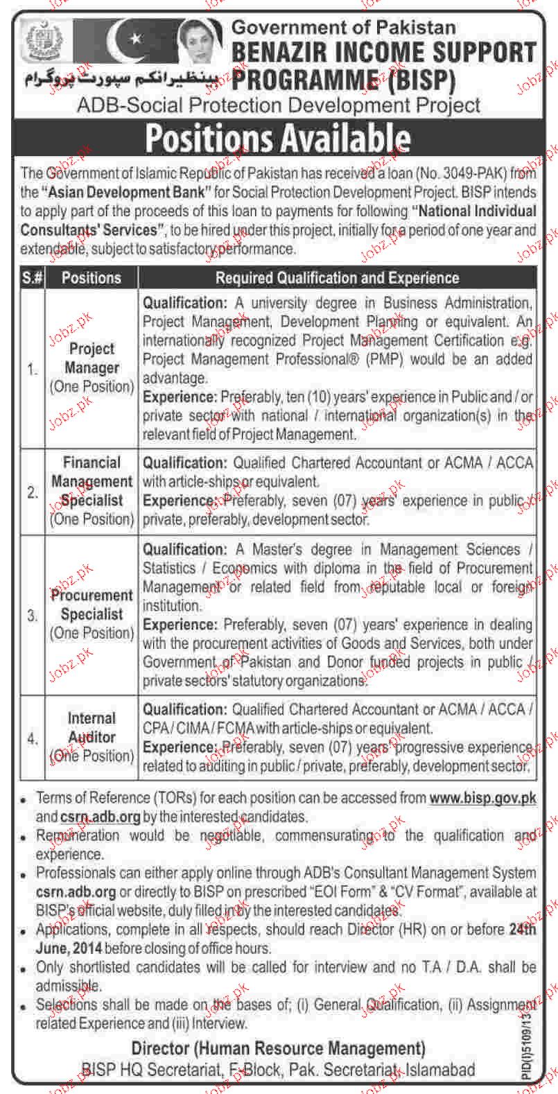 Apply as per details in job advertisement. Login to view further details of how to apply via https://www.jobz.pk online.