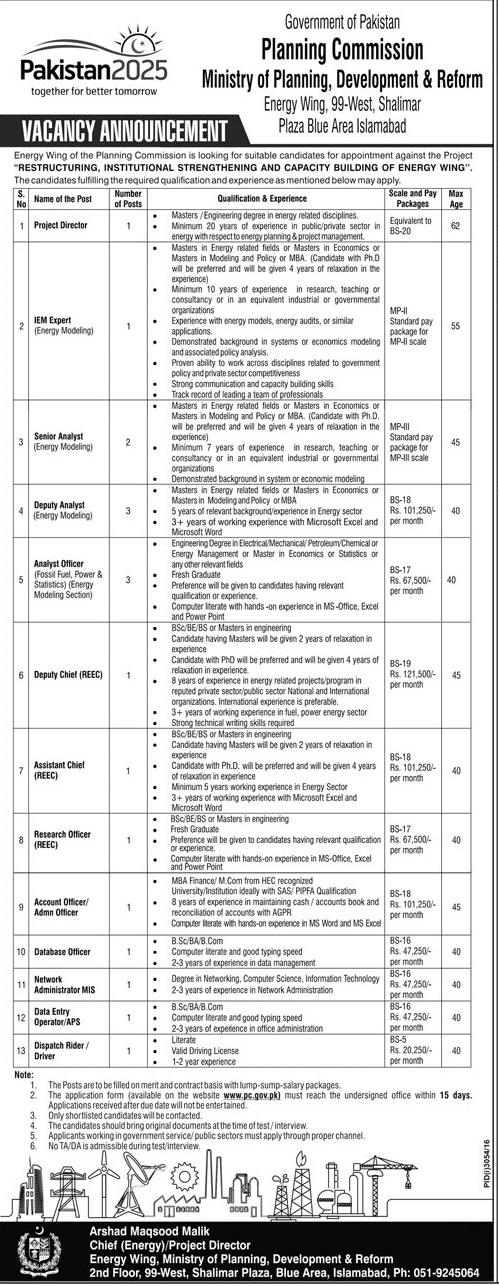 Latest Government Management Posts Islamabad 2025
