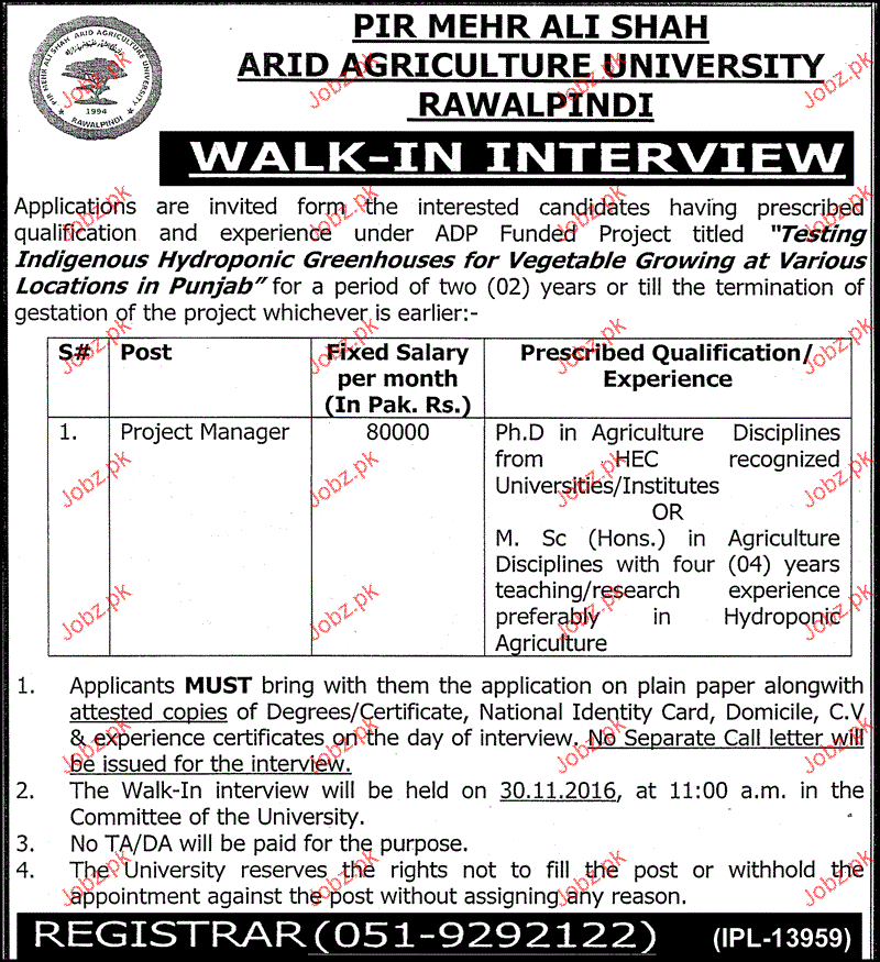 Latest Arid Agriculture University Management Posts Rawalpindi 2025