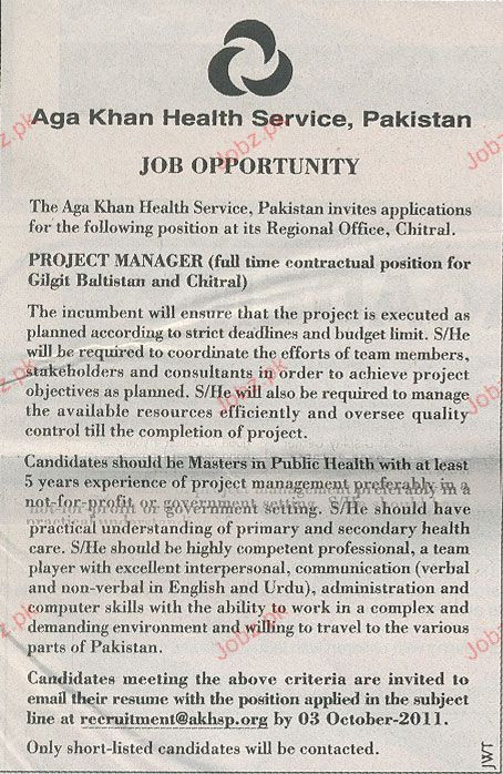 Apply as per details in job advertisement. Login to view further details of how to apply via https://www.jobz.pk online.