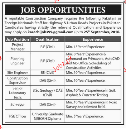 Apply as per details in job advertisement. Login to view further details of how to apply via https://www.jobz.pk online.
