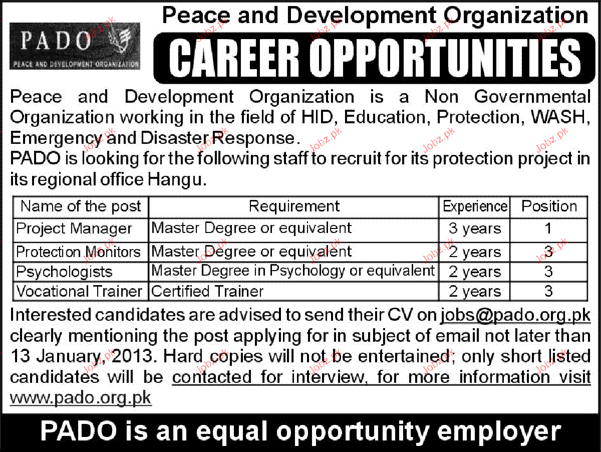 Apply as per details in job advertisement. Login to view further details of how to apply via https://www.jobz.pk online.